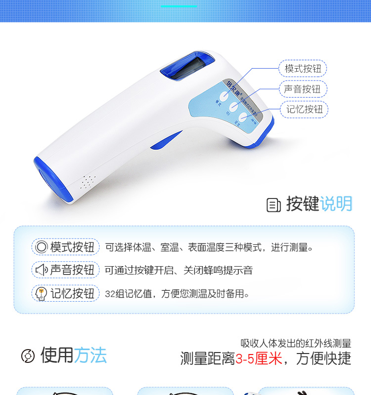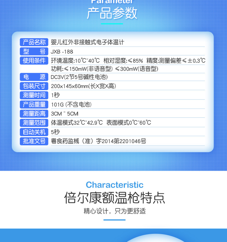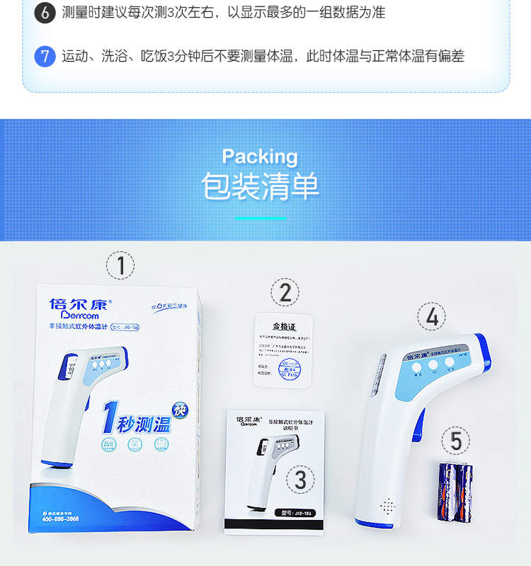 倍尔康 红外线电子体温计(额温枪) JXB-188