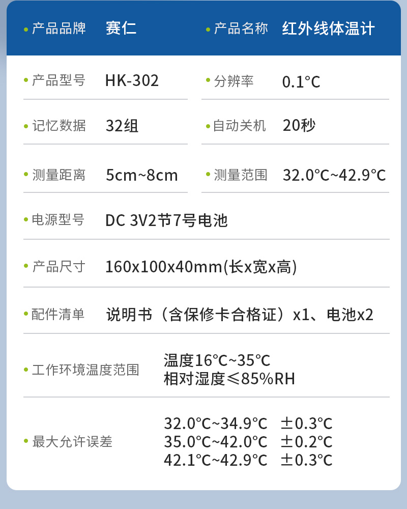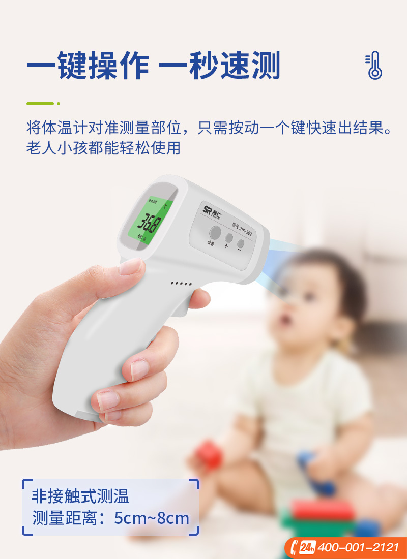 赛仁 红外线体温计 额温枪HK-302 婴儿温度计儿童额温计成人体温表家用测温枪电子测温仪