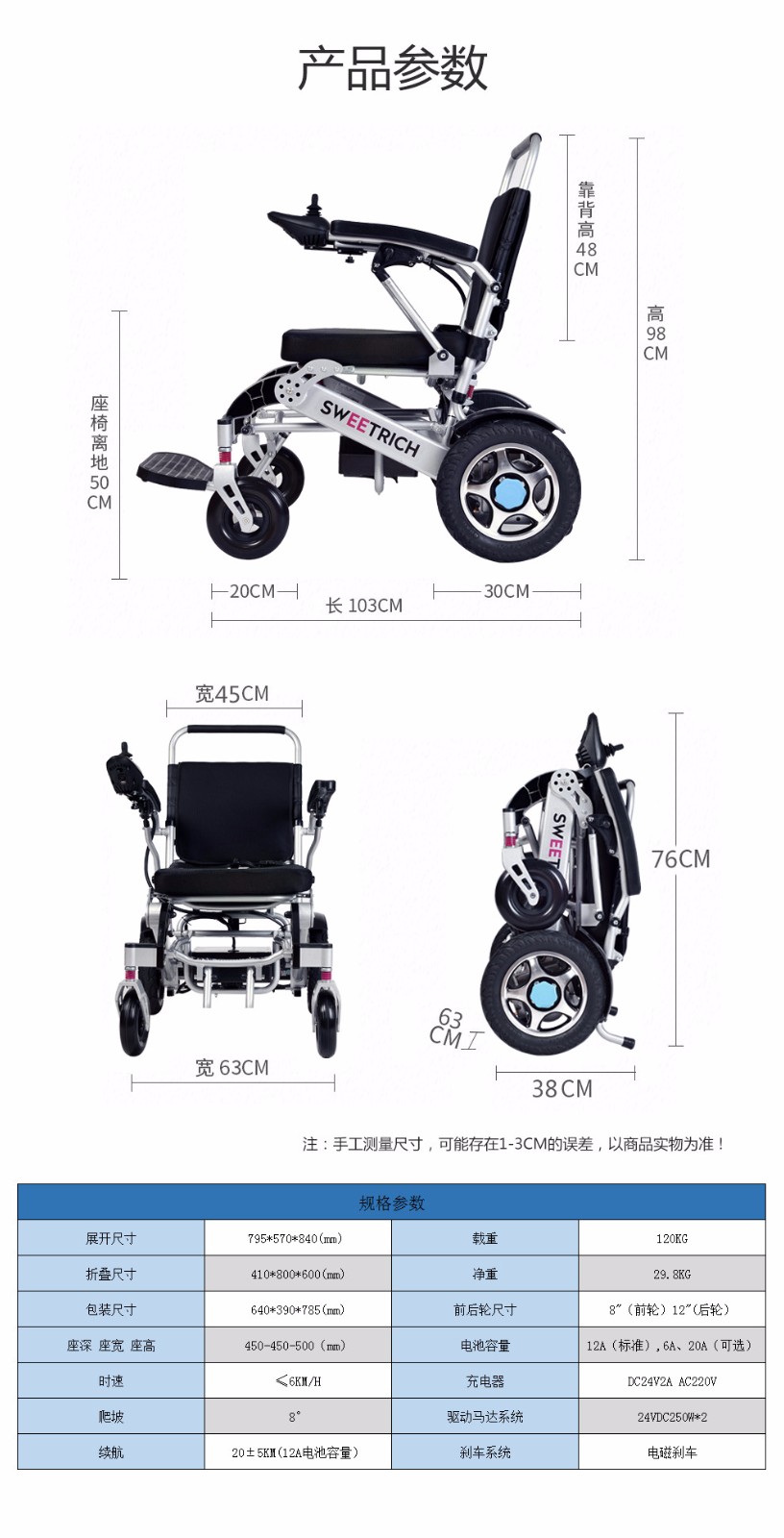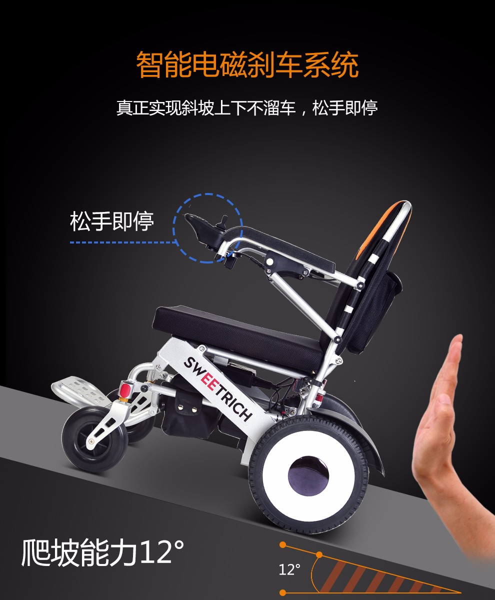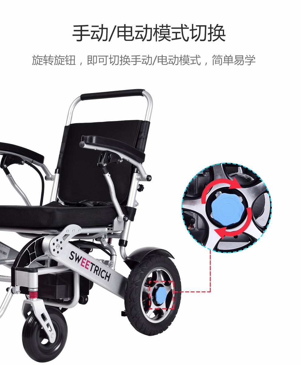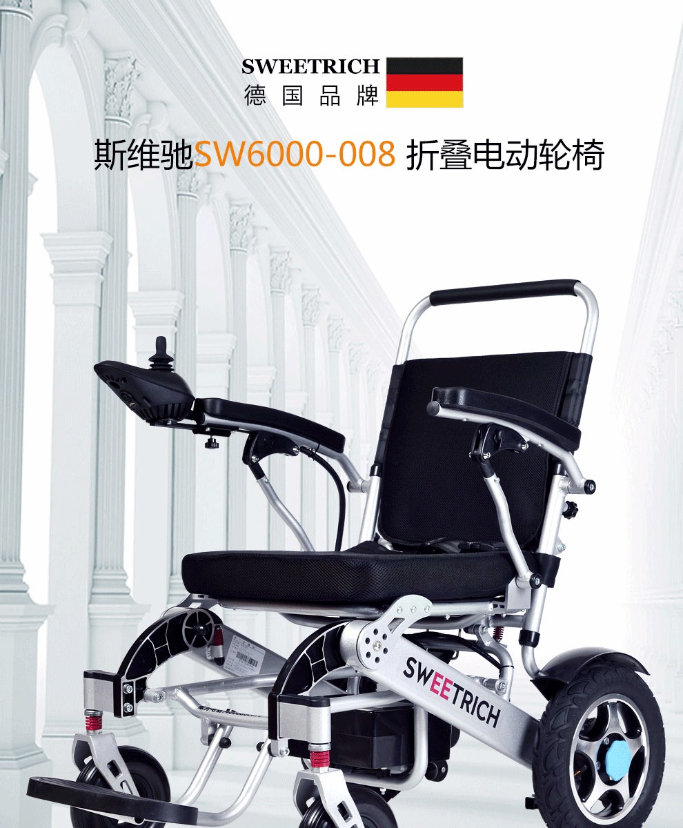 德国斯维驰 可折叠轻便电动轮椅 008银色锂电12A