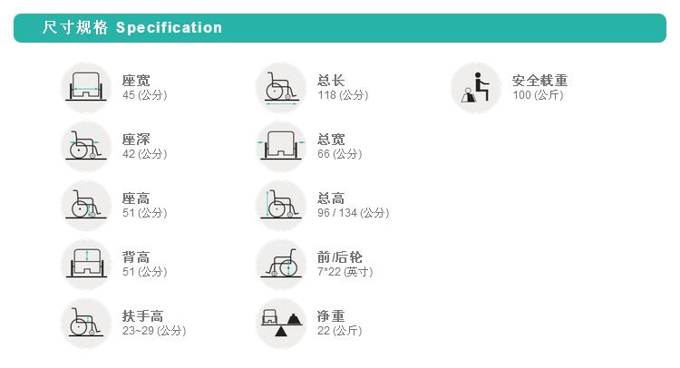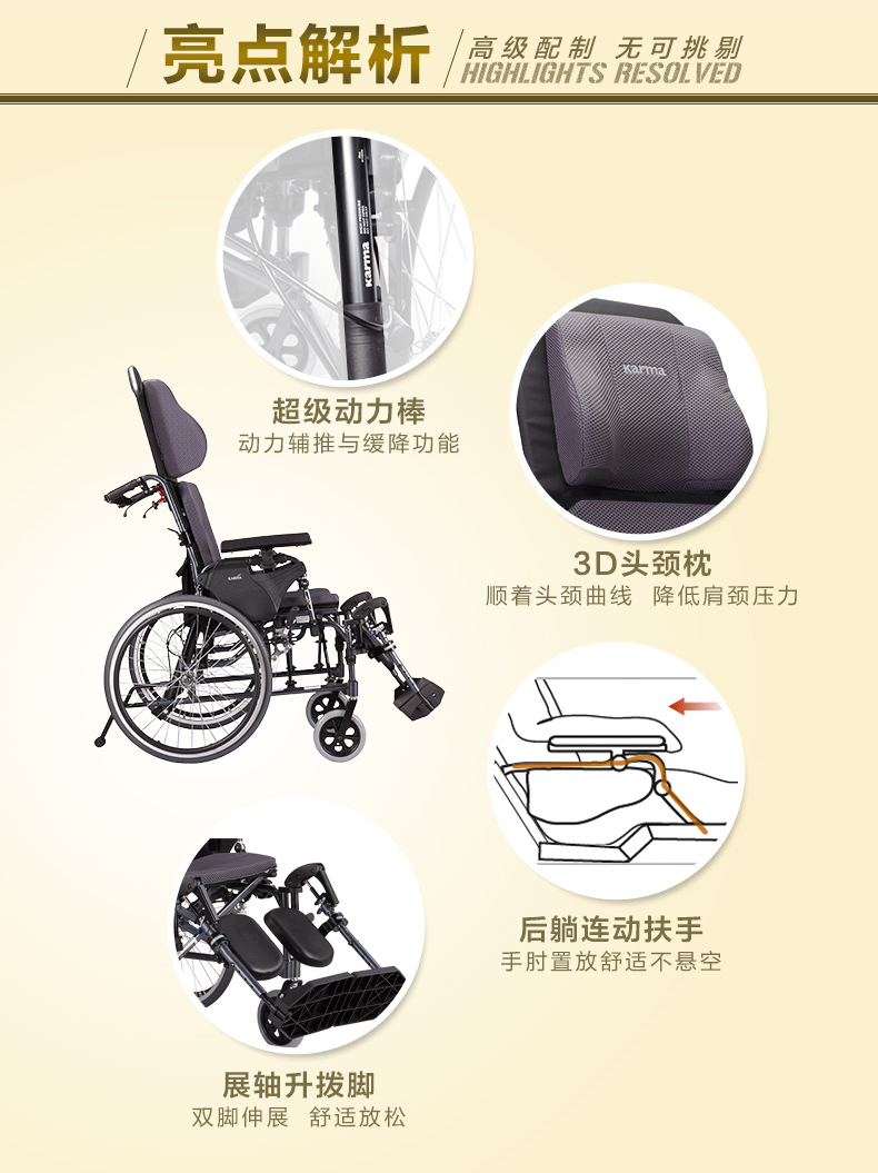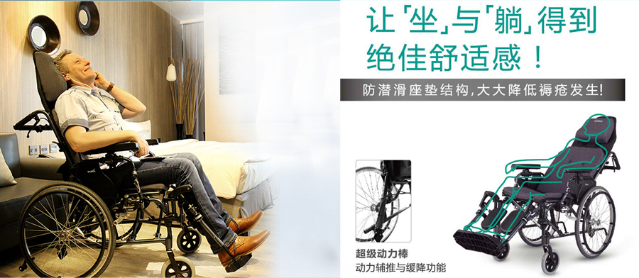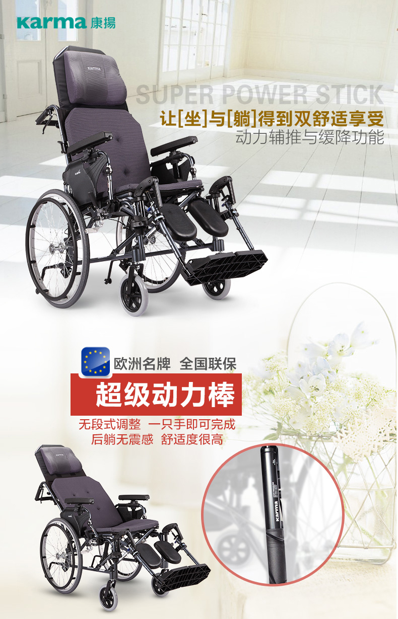 康扬(KARMA)平躺高靠背轻便折叠进口轮椅 KM-5000.2