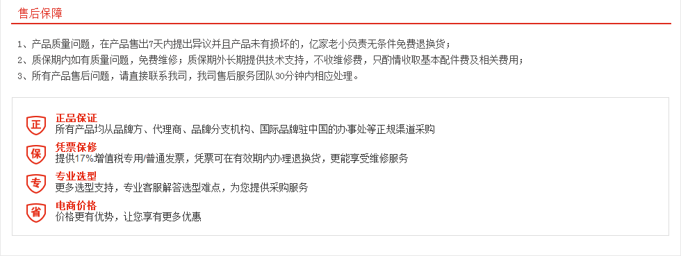 注: 产品质量问题,在产品售出7天内提出异议并且产品未有损坏的,亿家老小负责无条件免费退换货;质保期内如有质量问题,免费维修;质保期外长期提供技术支 持,不收维修费,只酌情收取基本配件费及相关费用;所有产品售后问题,请直接联系我司(7x24小时热线:400-027-9875),我司售后服务团队 30分钟内相应处理。