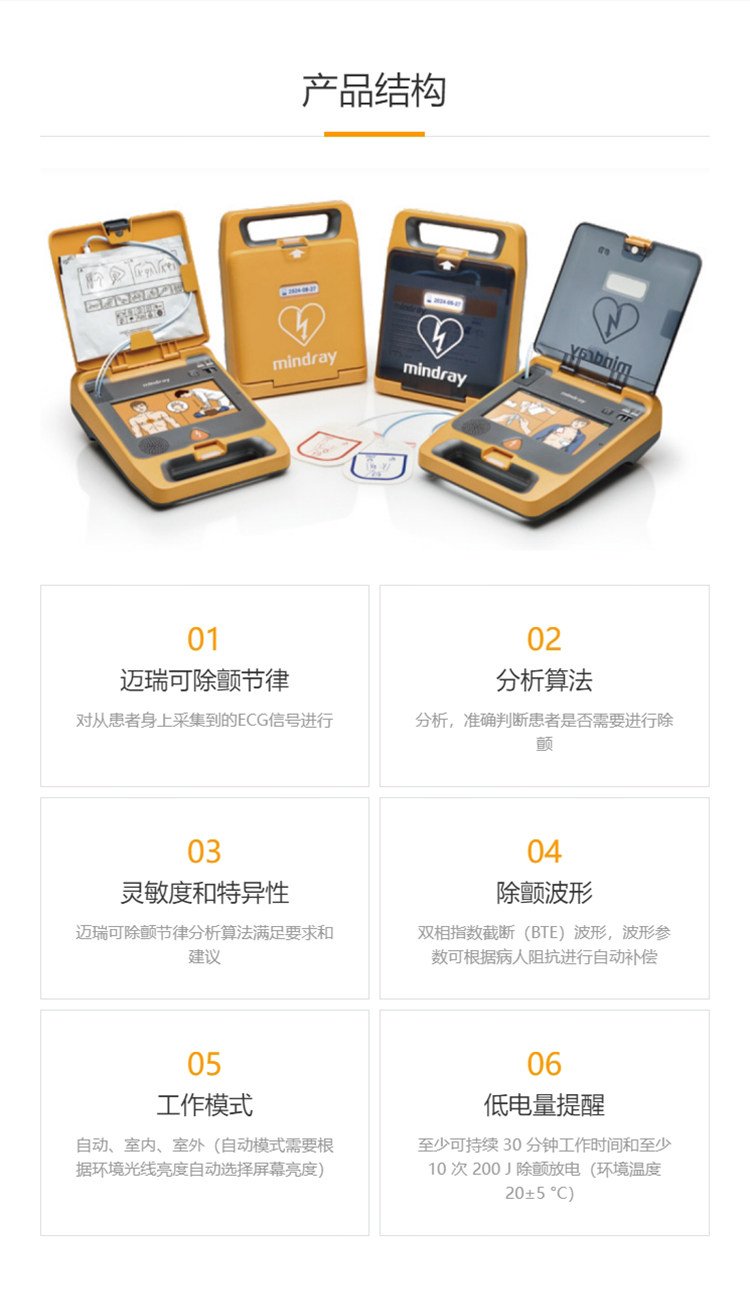- 除颤波形: 双相指数截断(BTE)波形,波形参数可根据病人阻抗进行自动补偿