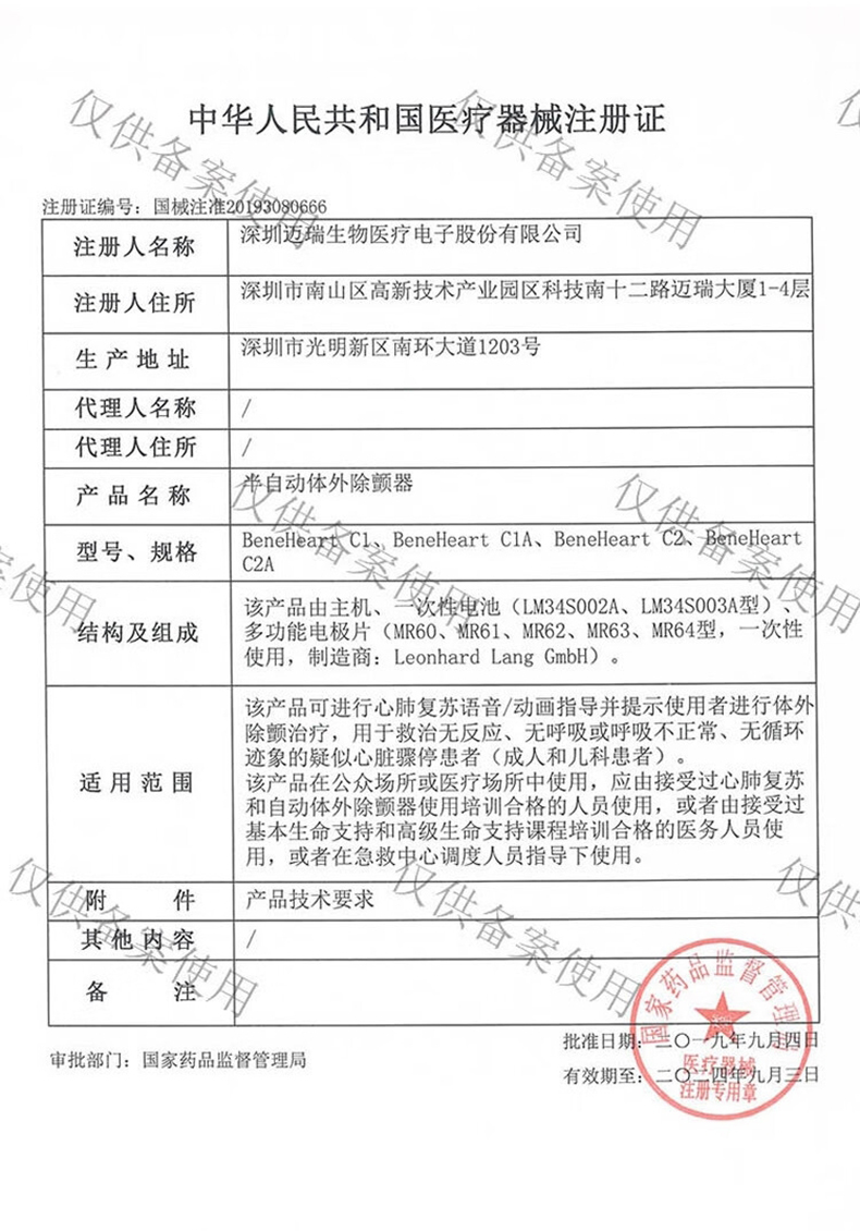 - 除颤波形: 双相指数截断(BTE)波形,波形参数可根据病人阻抗进行自动补偿