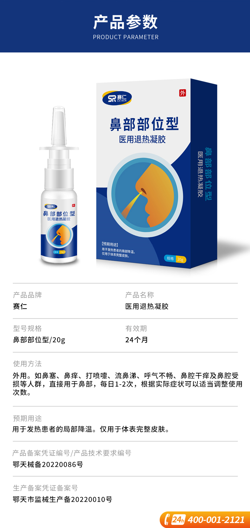 赛仁 鼻部部位型 医用退热凝胶 1瓶装20g