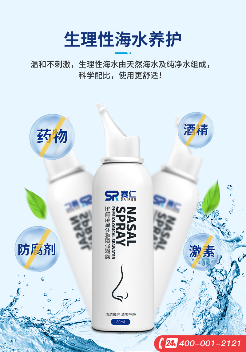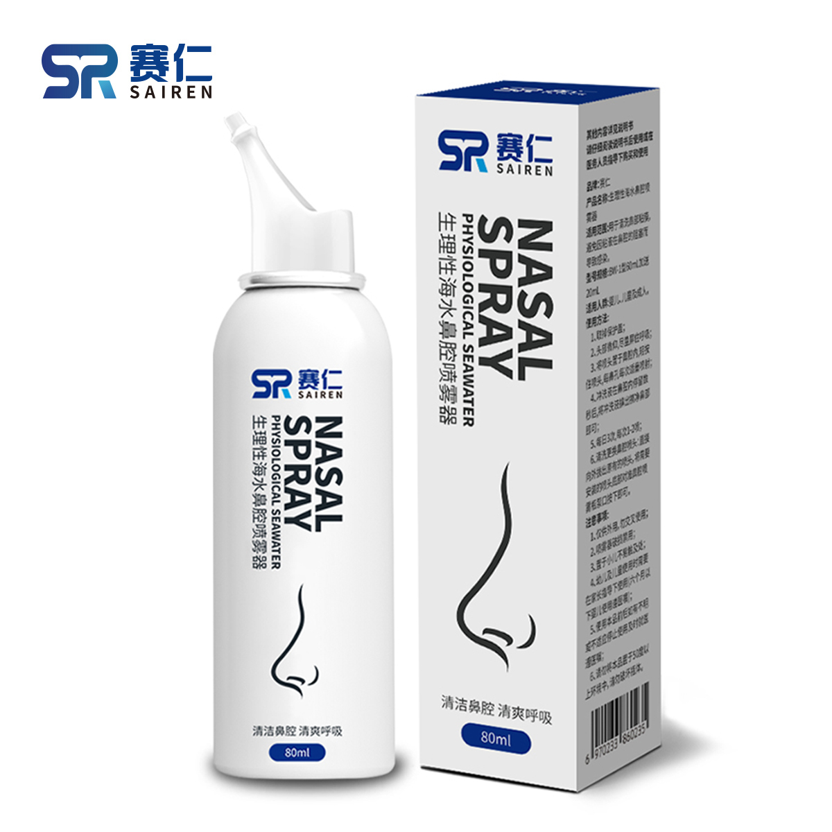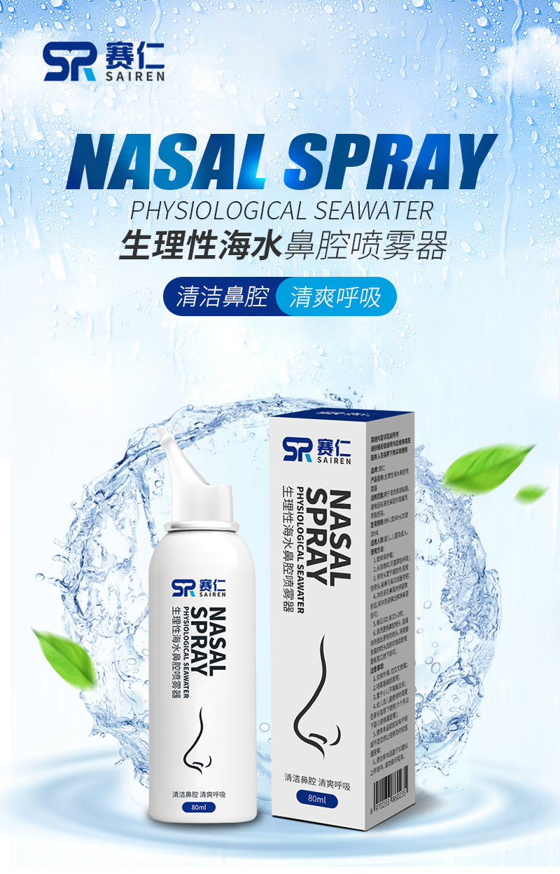 赛仁 洗鼻器 成人儿童洗鼻喷雾 生理性海水鼻腔喷雾器 80ml装
