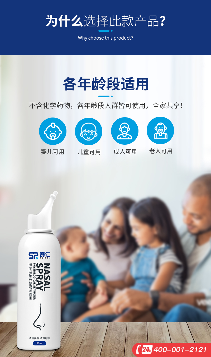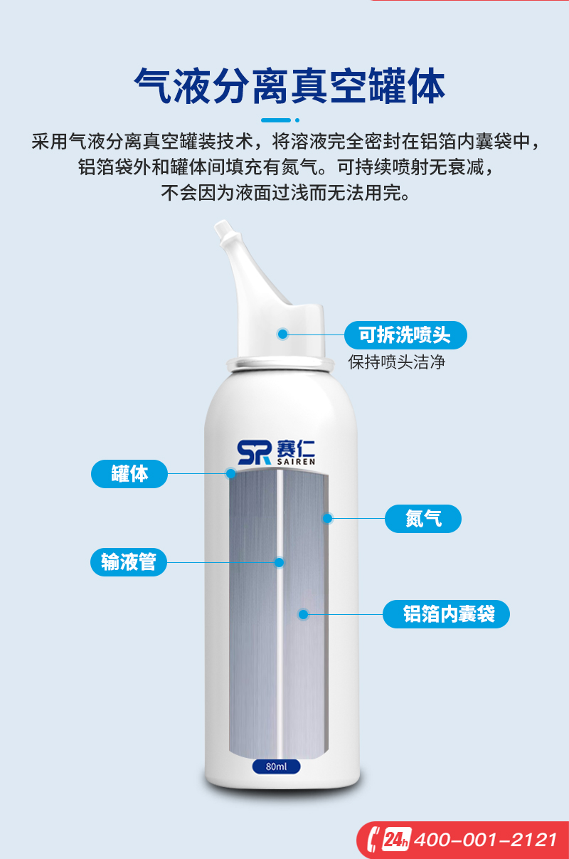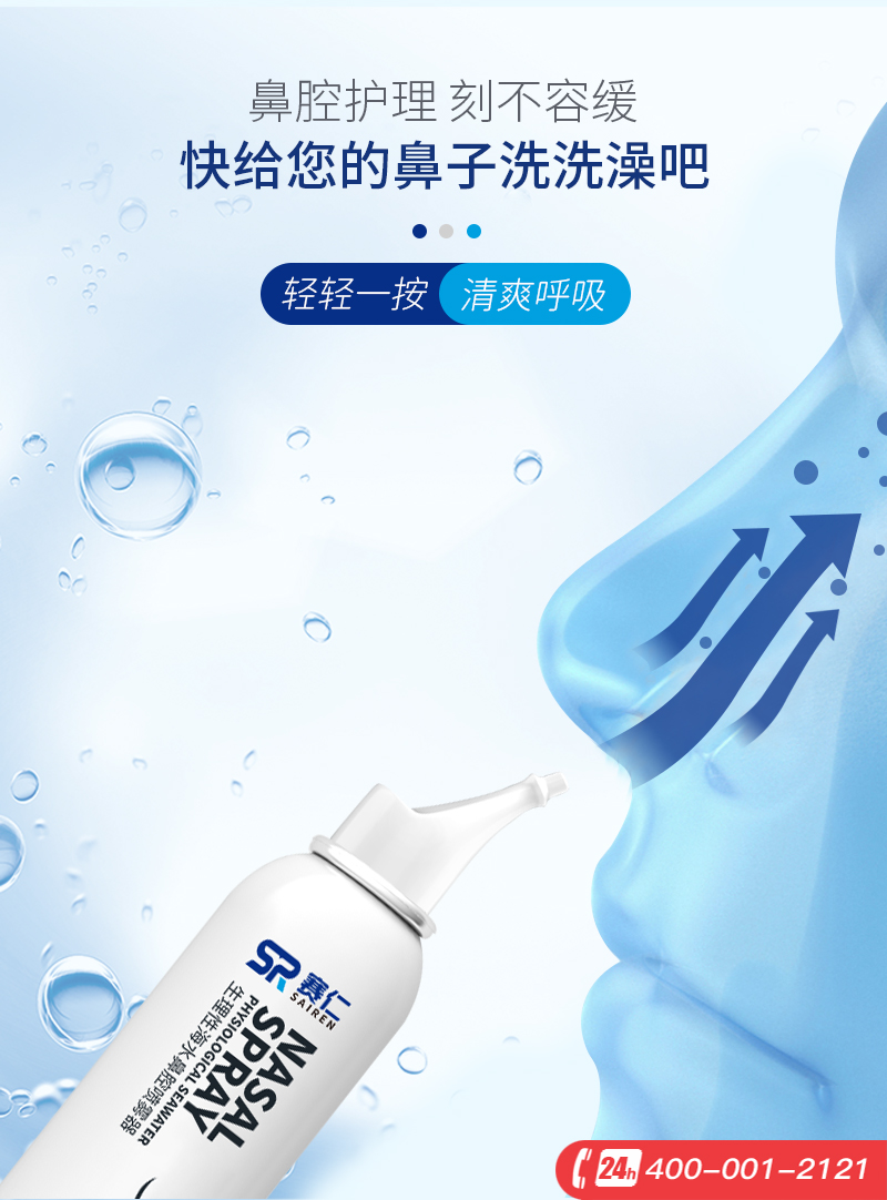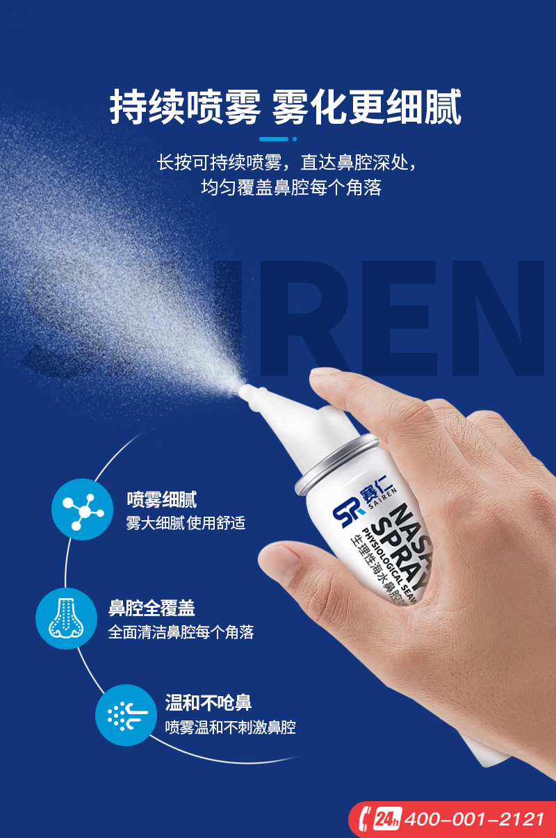 赛仁 洗鼻器 成人儿童洗鼻喷雾 生理性海水鼻腔喷雾器 80ml装