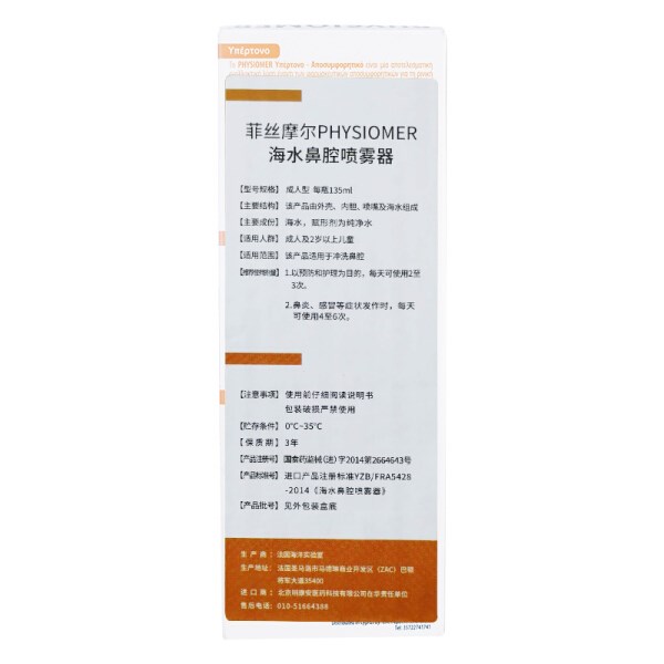 品牌:PHYSIOMER 菲丝摩尔 名称:海水鼻腔喷雾器 (成人高渗型)