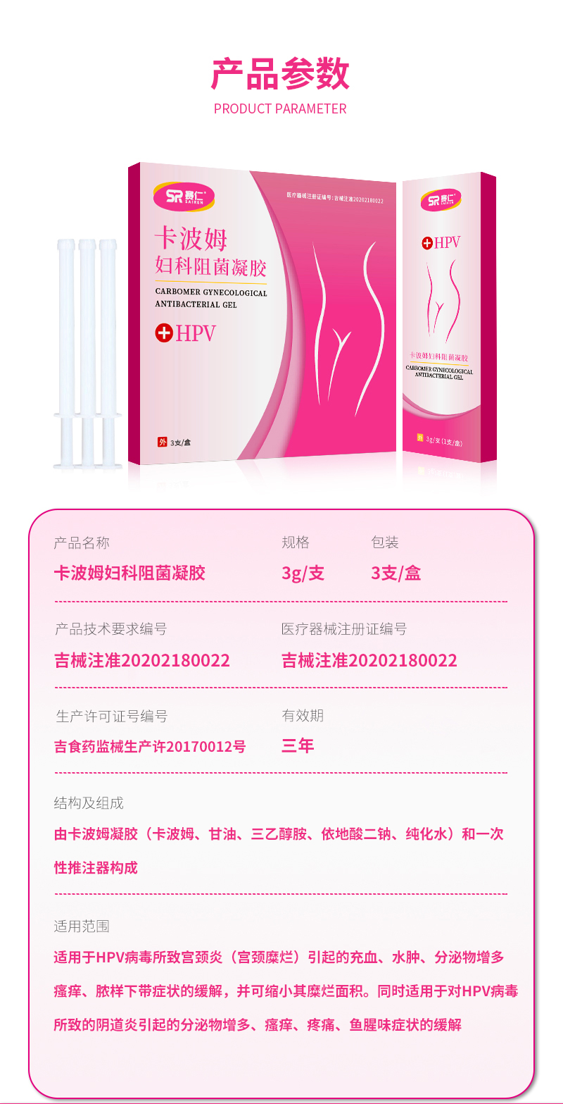 赛仁 卡波姆妇科阻菌凝胶 HPV高低危型、阴道炎、宫颈糜烂适用 3只装