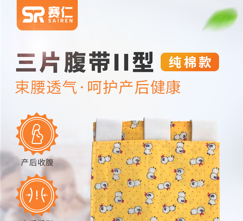 赛仁 三片腹带II型(产后收腹带((纯棉款))中号