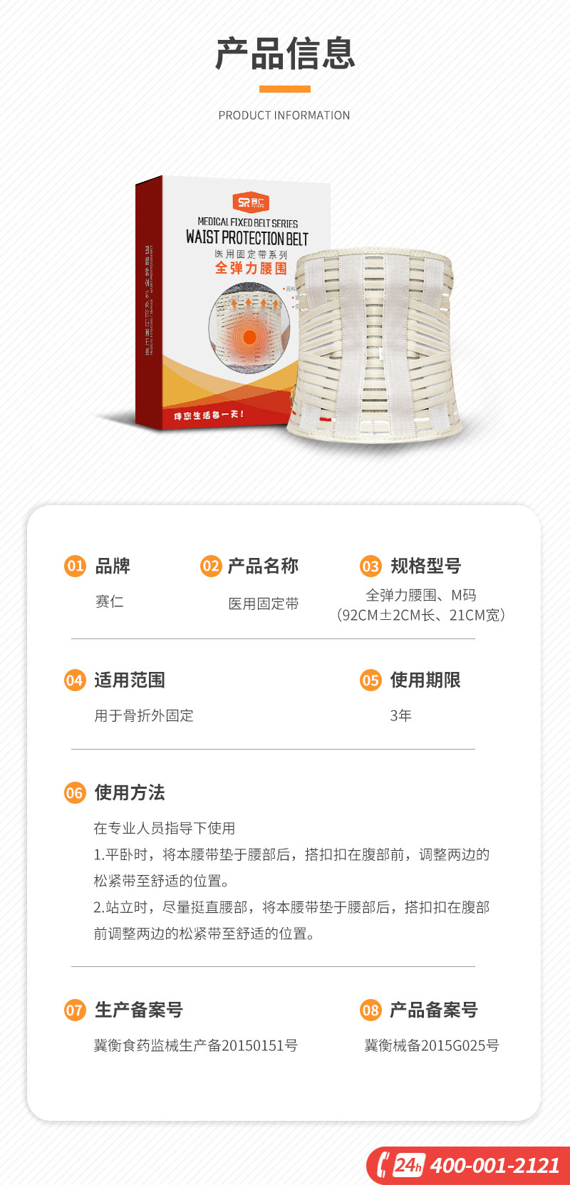 赛仁 医用固定带 全弹力腰围M码(长92cm±2cm 宽21cm) 带钢板 透气腹带 护腰带 手术后医用收腹带 束身带
