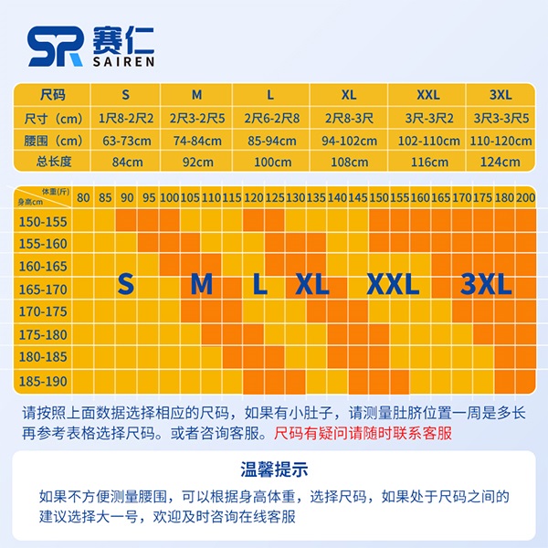 赛仁 医用固定带 全弹力腰围3XL码(长124cm±2cm 宽32cm) 带钢板 透气腹带 护腰带 手术后医用收腹带 束身带