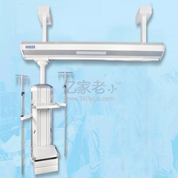 适用于医院ICU病房,是现代重症监护病房必备的医疗抢救辅助设备,主要由桥架、干段和湿段组成,其特点在于合理的干湿分两结构,湿区配置升降灵活的输液架。干湿区配置有可升降调节的仪器平台,在干湿区上分别配有氧气、空气、吸引、电源、网络输入终端、输液泵架。干湿区采用悬臂结构,提高了治疗空间,旋转部分来用制动刹车防飘移,摘梁中间配置有可旋转升降式照明治疗灯。主体材料采用高强度特殊铝合金型材及不锈钢,表面处理采用进口原料,高压静电喷塑,防紫外线、臭氧子。为临床治疗提供了照明解决方案,另外还可根据医院要求选配各类系统。