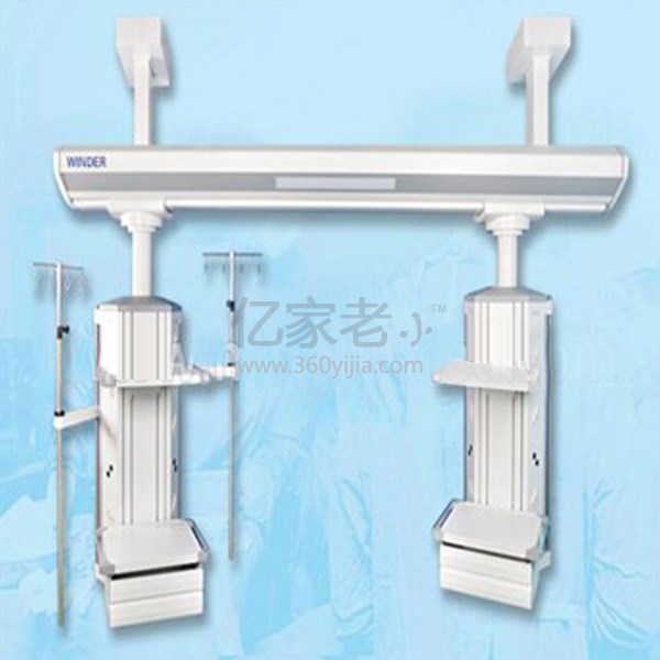 适用于医院ICU病房,是现代重症监护病房必备的医疗抢救辅助设备,主要由桥架、干段和湿段组成,其特点在于合理的干湿分两结构,湿区配置升降灵活的输液架。干湿区配置有可升降调节的仪器平台,在干湿区上分别配有氧气、空气、吸引、电源、网络输入终端、输液泵架。干湿区采用悬臂结构,提高了治疗空间,旋转部分来用制动刹车防飘移,摘梁中间配置有可旋转升降式照明治疗灯。主体材料采用高强度特殊铝合金型材及不锈钢,表面处理采用进口原料,高压静电喷塑,防紫外线、臭氧子。为临床治疗提供了照明解决方案,另外还可根据医院要求选配各类系统。