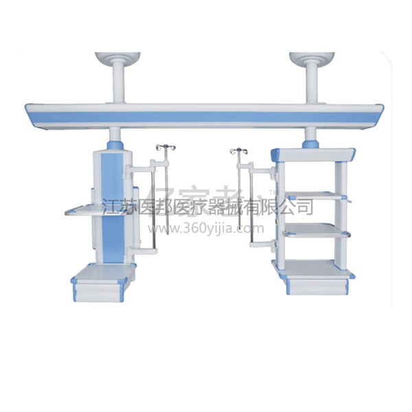 ICU 梁式吊桥用于医院ICU病房,是现代重症监护病房必备的医疗抢救辅助设备,主要有桥架、干段和湿段组成,其特点在于合理的干湿分离结构,湿区配置升降灵活的输液架。干湿区配置有可升降调节的仪器平台,在干湿区上分别配有氧气、空气、吸引、电源、网络输入终端、输液泵架。干湿区采用悬臂结构,提供了治疗空间,旋转部分采用自动刹车防飘移,横梁中间配置有可旋转升降式照明治疗灯。为临床治疗提供了照明解决方案,另外还可根据医院要求选配各类系统。