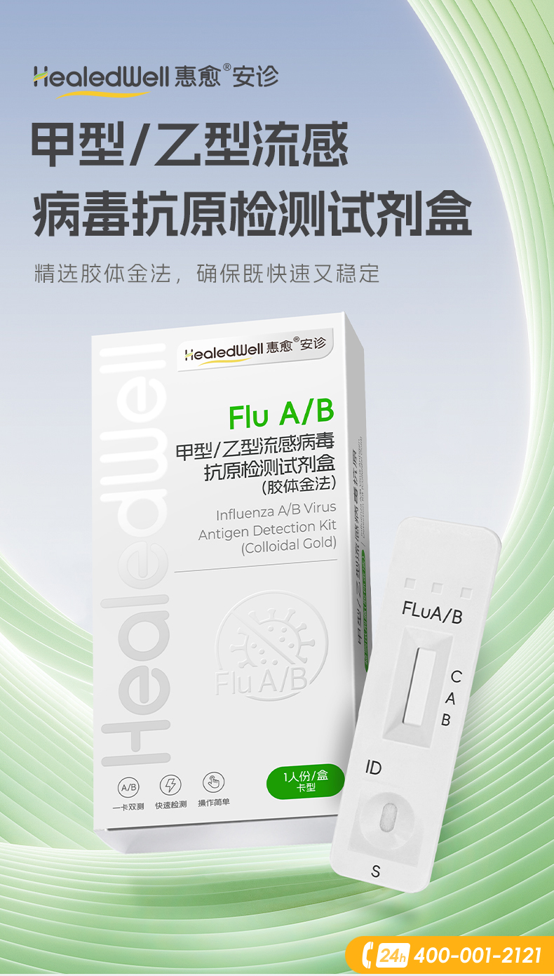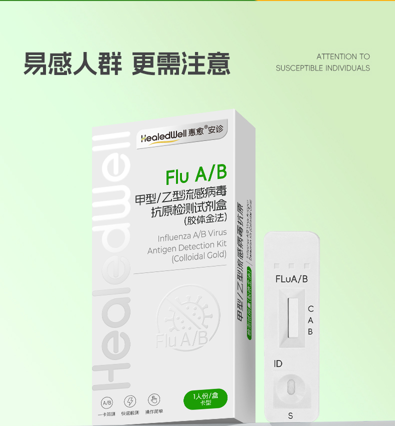 惠愈-安诊 Flu A/B甲型/乙型流感病毒抗原检测试剂盒(胶体金法) 1人份/盒