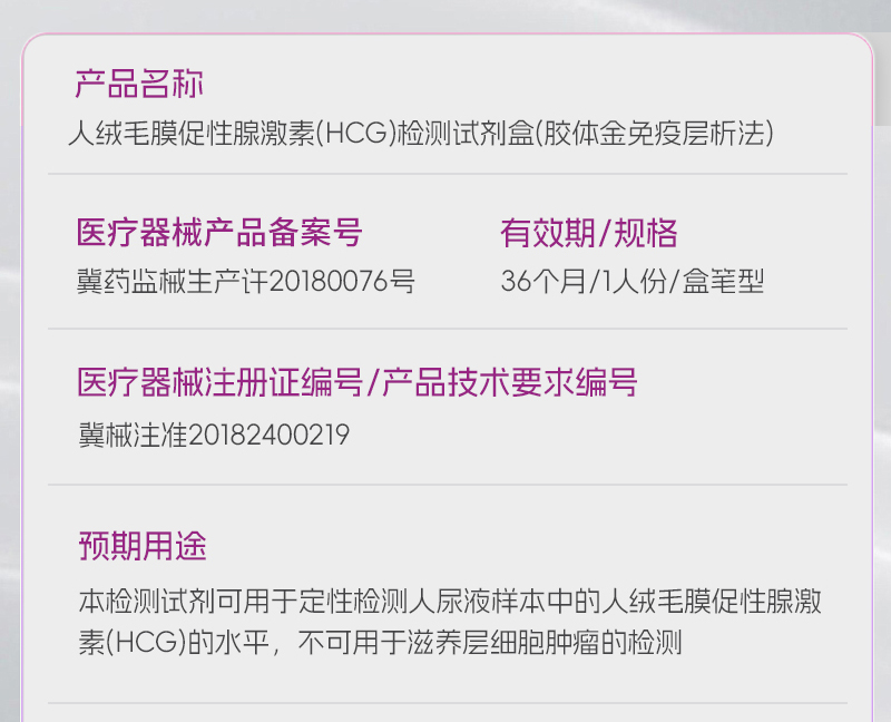惠愈-安诊 人绒毛膜促性腺激素(HCG)检测试纸 胶体金免疫层析法 1人份/盒