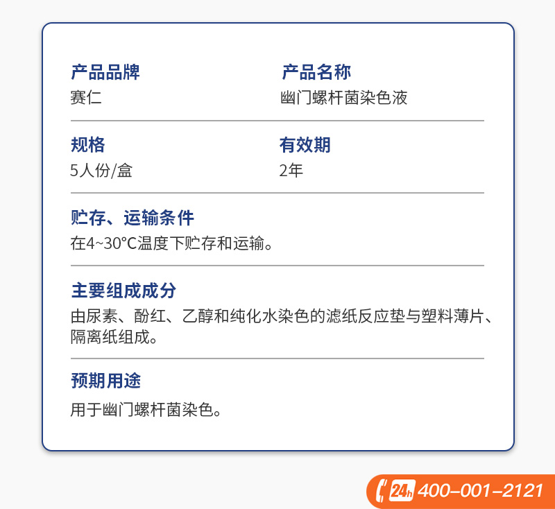 赛仁 幽门螺杆菌染色液(牙垢) 检测试卡 5人份/盒