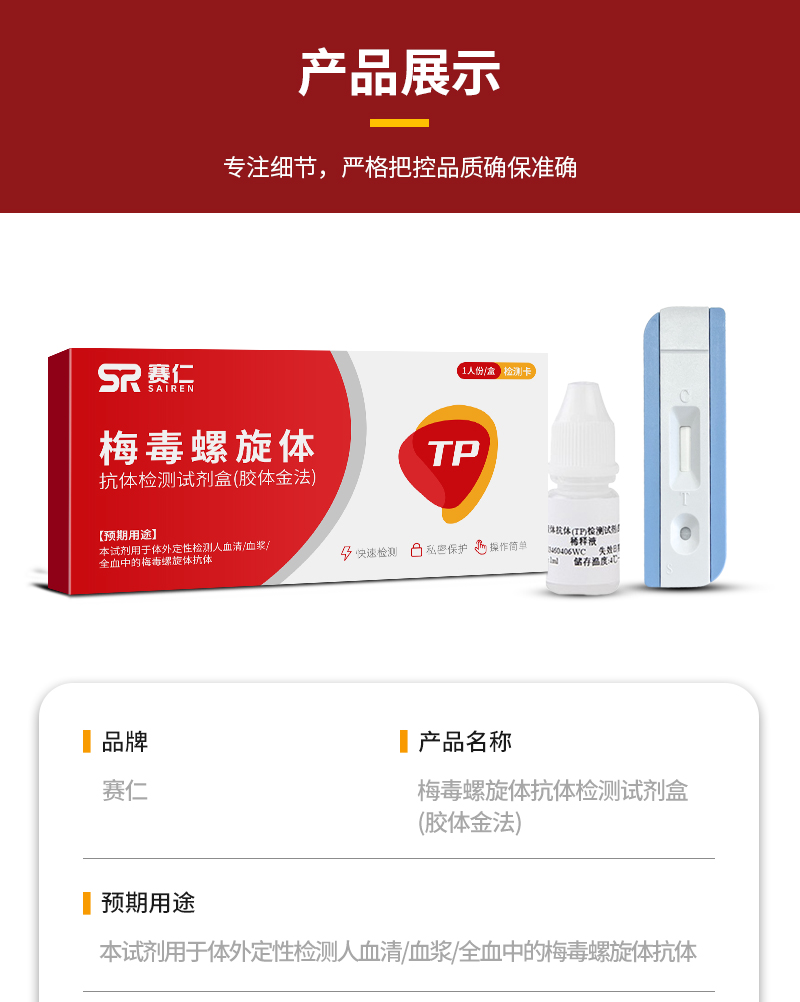 赛仁 梅毒螺旋体抗体检测试剂盒(胶体金法)