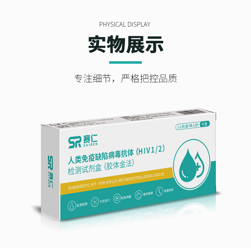 赛仁 艾滋病检测试纸 HIV试纸 血液检测 1人份/盒