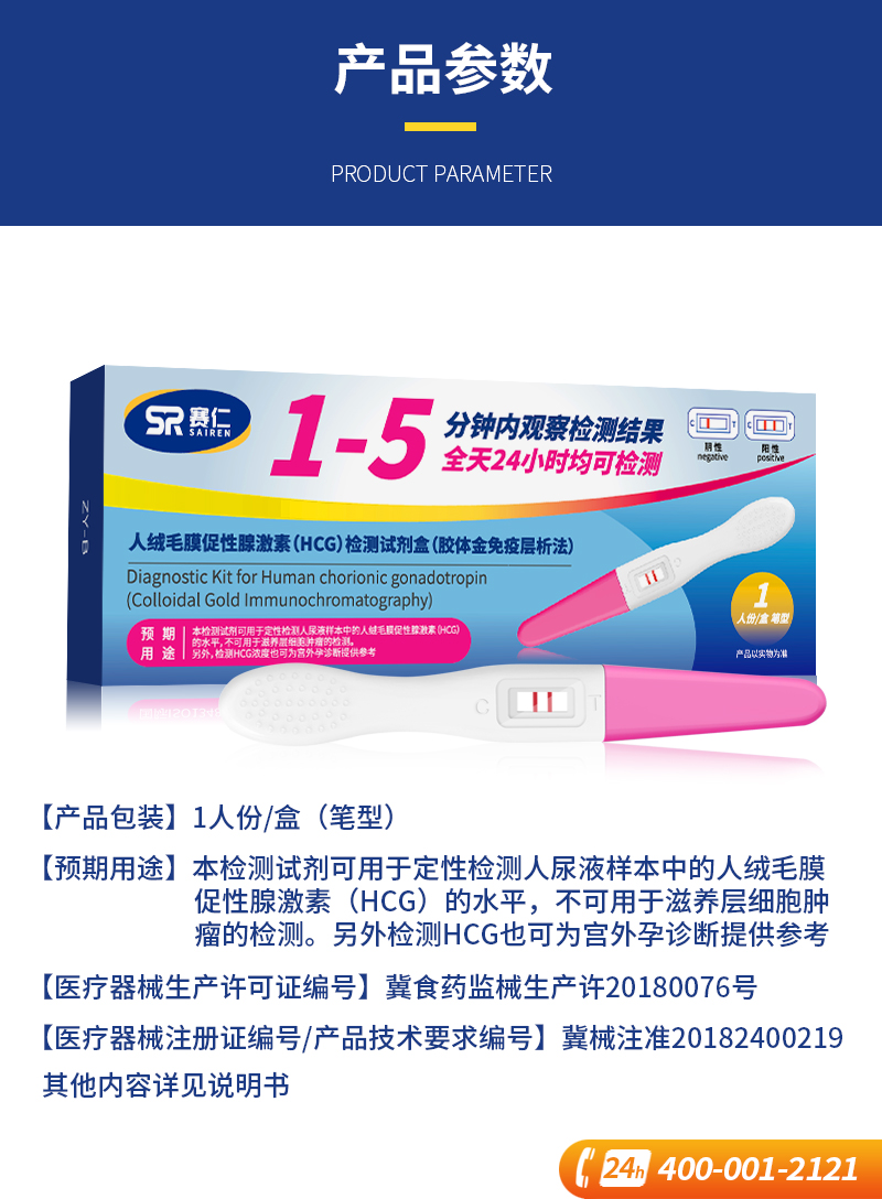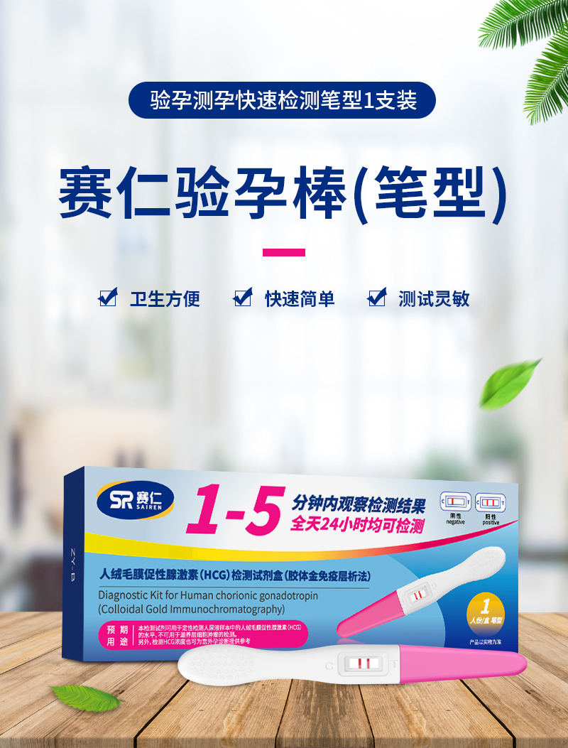 赛仁 验孕棒 早早孕检测试剂盒 1支装 验孕测孕 早孕检测