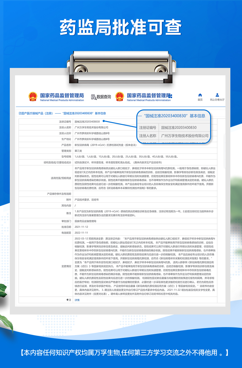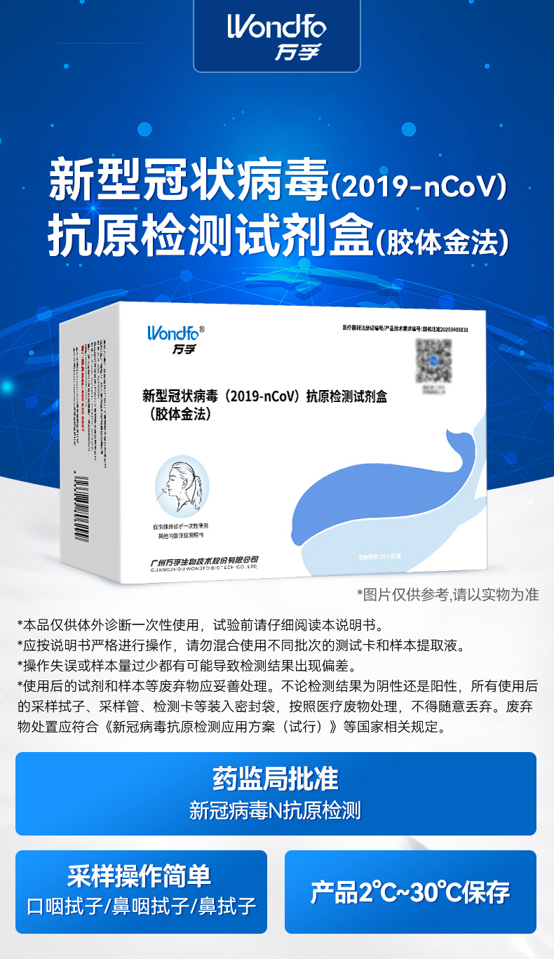万孚 新型冠状病毒抗原检测试剂盒(胶体金法) 非核酸 新冠快速自检测试纸 口咽拭子鼻咽拭子 (20人份)新冠抗原自测试剂