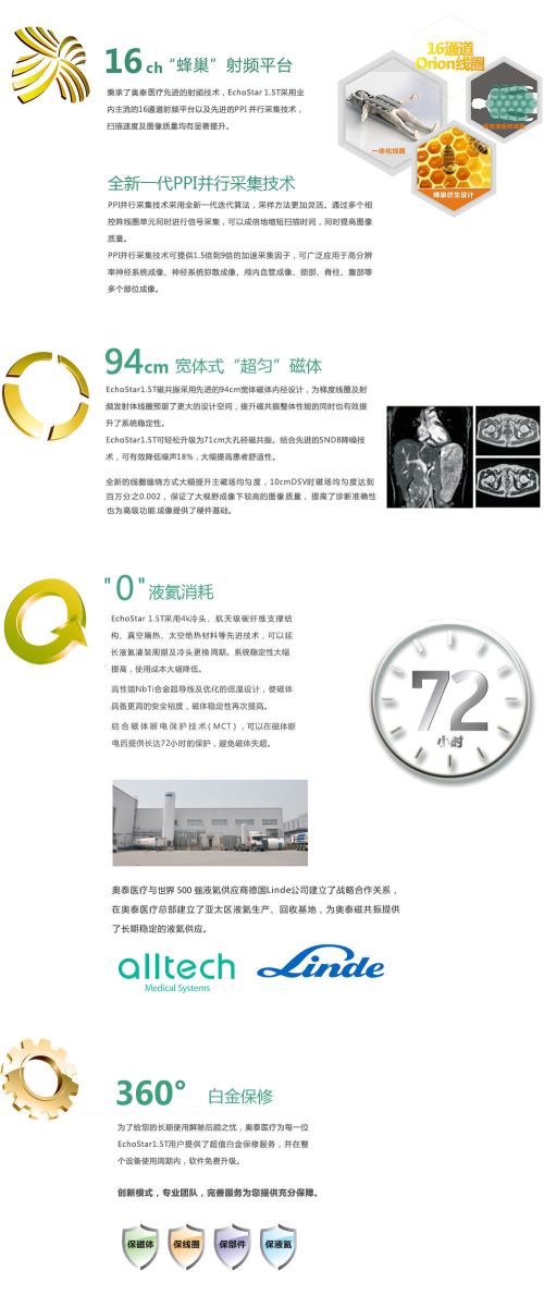 奥泰医疗在打破了国外磁共振产品对于中国市场的垄断之后,仍然保持着在研发上的持续投入,于2012年再次在国内推出16通道1.5T磁共振以满足中国客户对于高端磁共振的需求。这一扛鼎力作性能比肩国际水平,在国产磁共振市场竞争中表现突出。