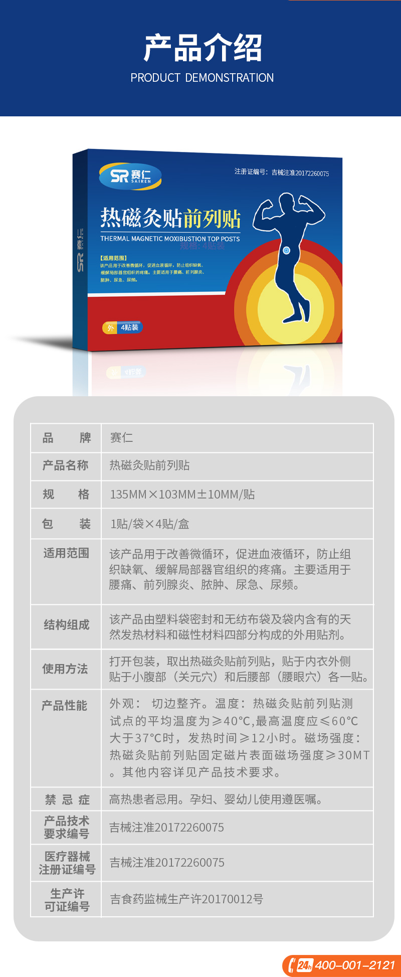 赛仁 热磁灸贴前列腺贴135mm*103mm±10mm/贴,4贴/盒