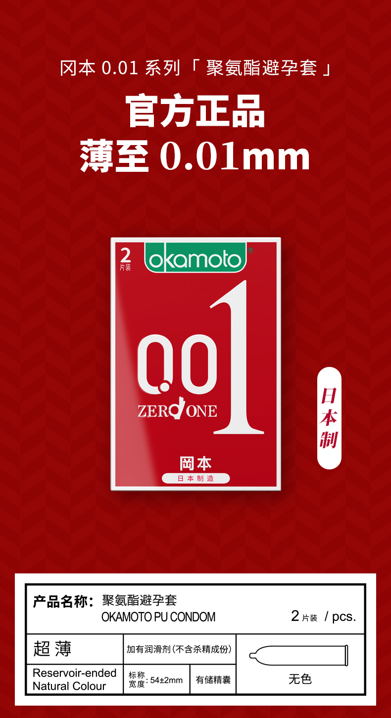 冈本避孕套0.01安全套2片装成人用品 进口 产品 okamoto