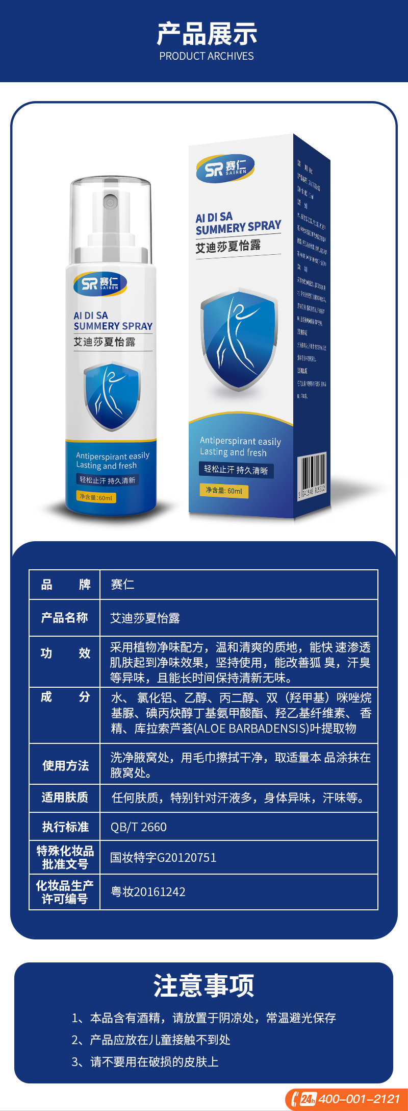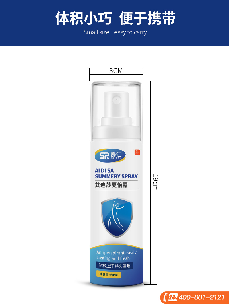赛仁 艾迪莎夏怡露 去狐臭喷雾夏怡露60ml 男士女士腋窝腋臭止汗露腋下香体
