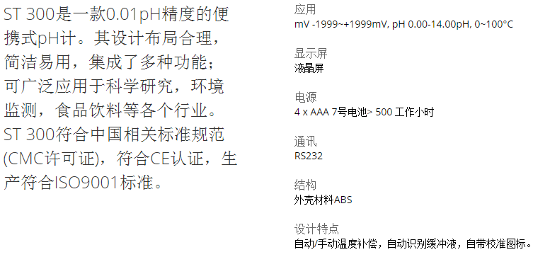 奥豪斯OHAUS 便携式pH计 ST 300