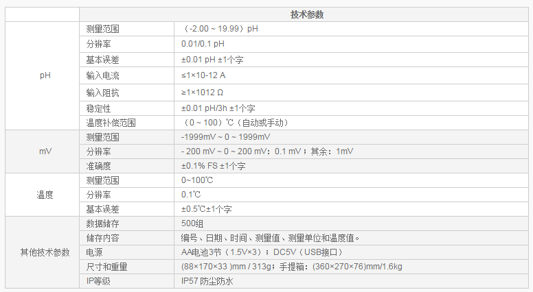 ♦ 配置校准溶液和手提箱,适合野外和现场使用。