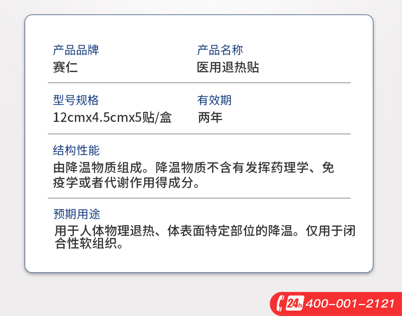 赛仁 退热贴 医用退热贴/温感变色5贴/盒