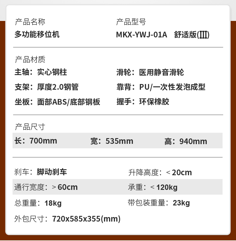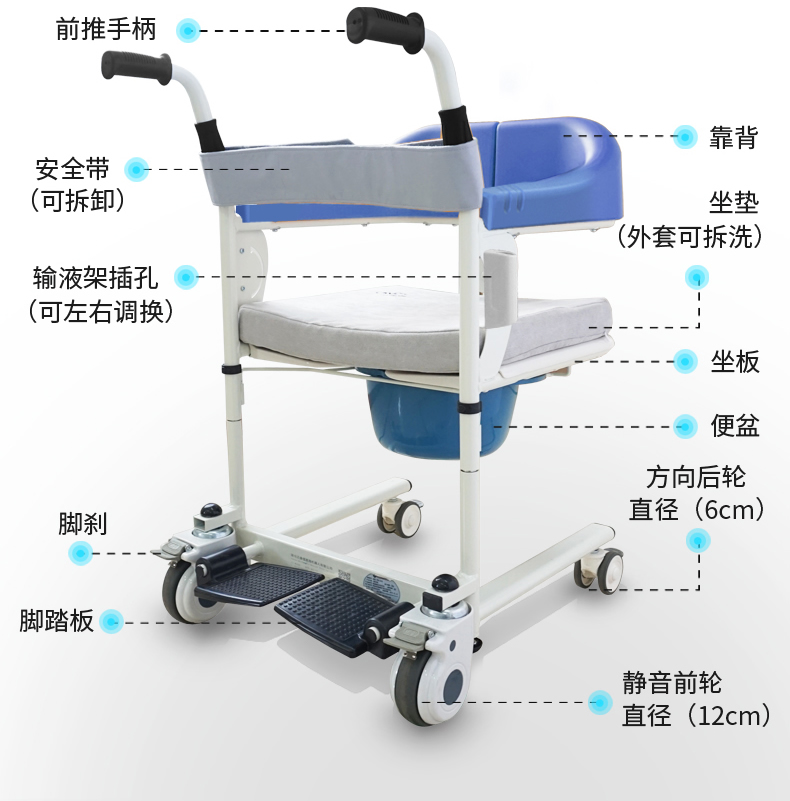 迈康信 瘫痪老人移位器 家庭护理洗澡轮椅带坐便器椅 残疾人移位机多功能轮椅卧床病人免扶抱 棕色(舒适款)