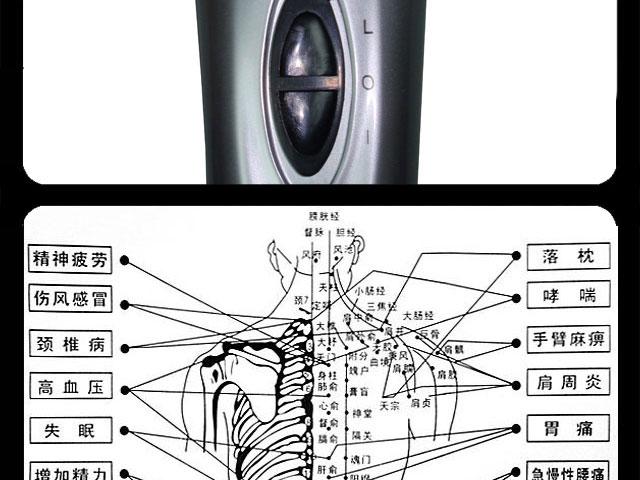 是融合中国传统按摩术和现代电子技术的一新产品,若针对人体经穴按摩,使人体各个器官产生刺激反射作用,促进人体经络通畅,改善血液离子浓度,从而达到保健之目的。