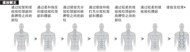 全身覆盖由颈部至腰部的广阔范围,能配合不同人士的身高与体型来进行按压程序。
