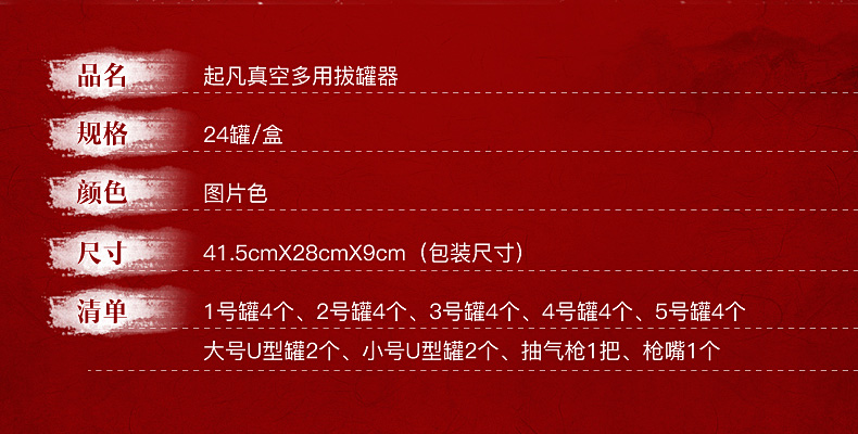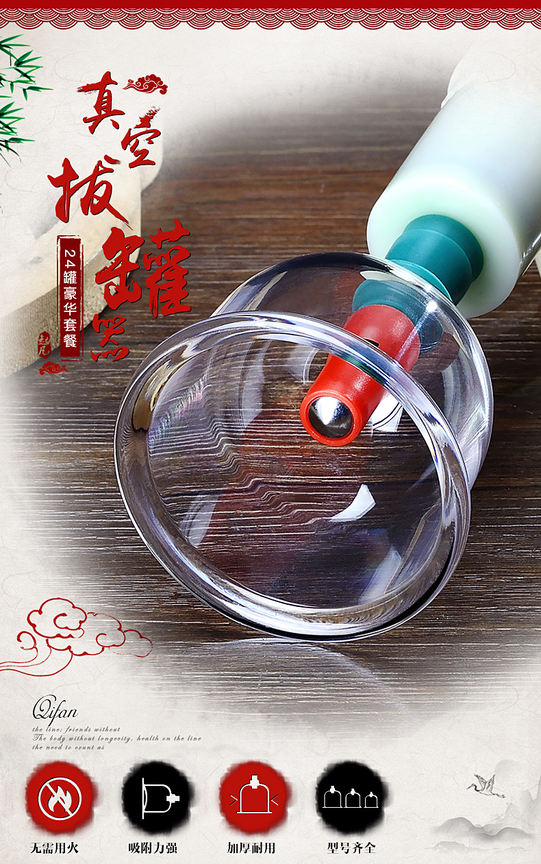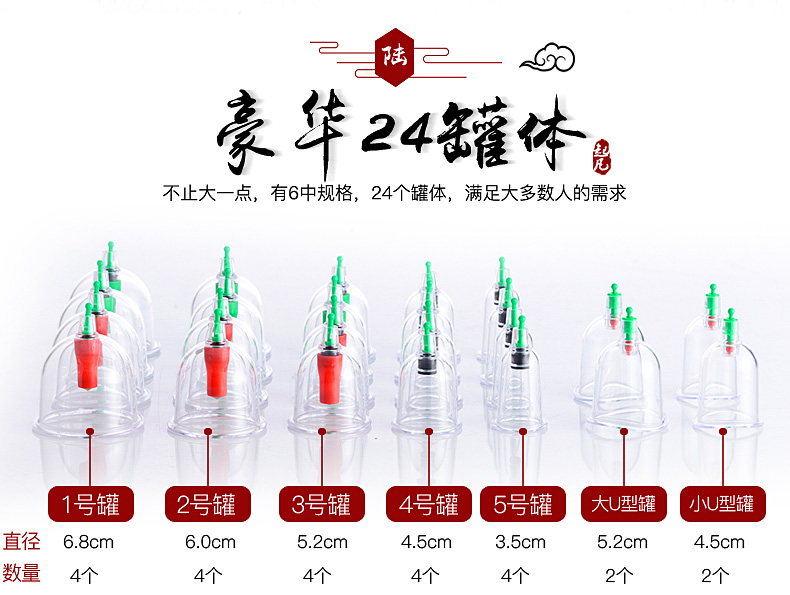 起凡 真空拔罐器 抽气式防爆非玻璃 24罐豪华套装