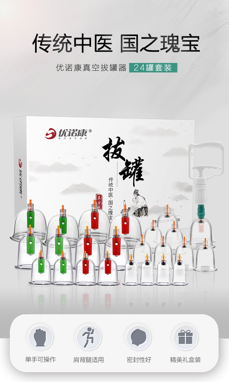 优诺康 家用真空拔罐器24罐 抽气式非玻璃