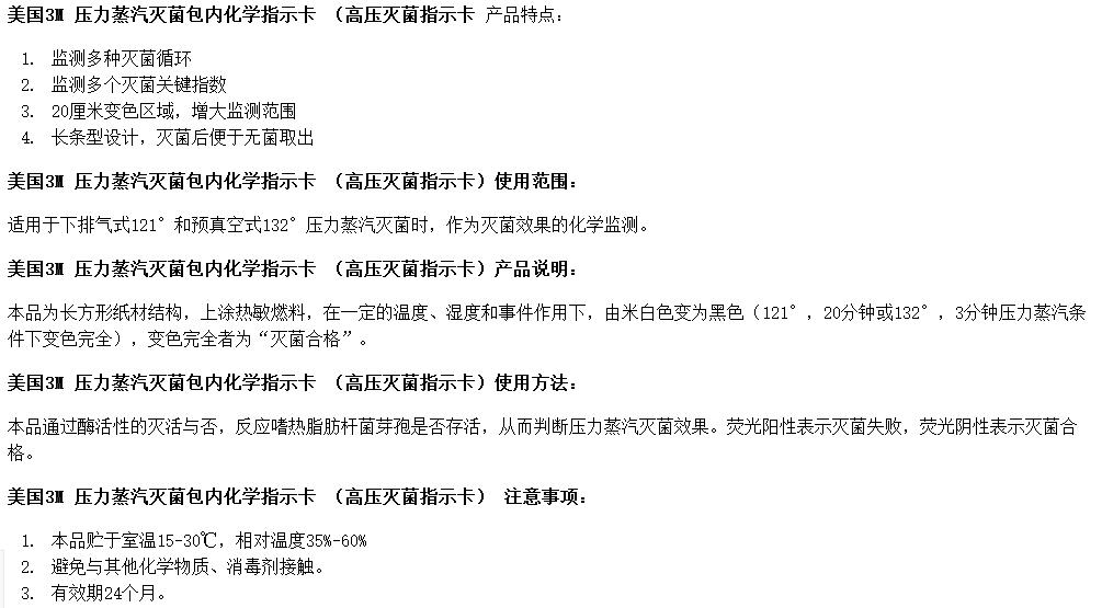 3M 压力蒸汽灭菌包内化学指示卡 1250