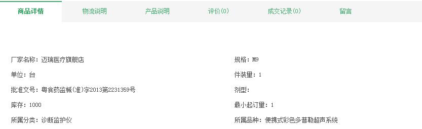 迈瑞便携式彩色多普勒超声系统M9