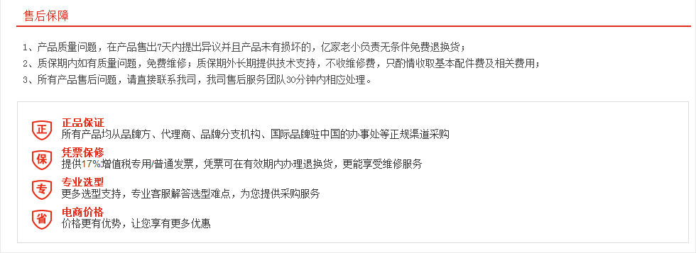 注: 产品质量问题,在产品售出7天内提出异议并且产品未有损坏的,亿家老小负责无条件免费退换货;质保期内如有质量问题,免费维修;质保期外长期提供技术支 持,不收维修费,只酌情收取基本配件费及相关费用;所有产品售后问题,请直接联系我司(7x24小时热线:400-027-9875),我司售后服务团队 30分钟内相应处理。