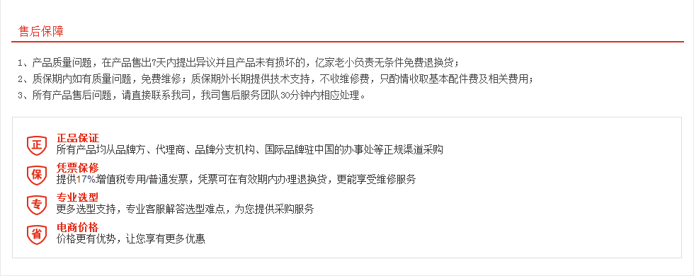 注: 产品质量问题,在产品售出7天内提出异议并且产品未有损坏的,亿家老小负责无条件免费退换货;质保期内如有质量问题,免费维修;质保期外长期提供技术支 持,不收维修费,只酌情收取基本配件费及相关费用;所有产品售后问题,请直接联系我司(7x24小时热线:400-027-9875),我司售后服务团队 30分钟内相应处理。