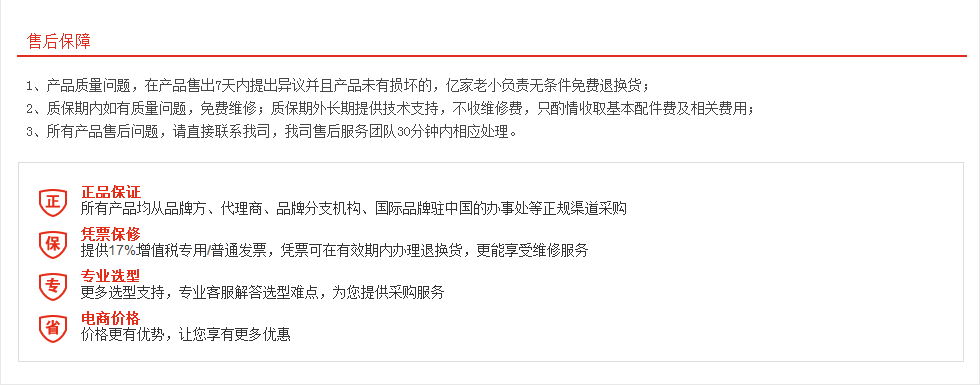 注: 产品质量问题,在产品售出7天内提出异议并且产品未有损坏的,亿家老小负责无条件免费退换货;质保期内如有质量问题,免费维修;质保期外长期提供技术支 持,不收维修费,只酌情收取基本配件费及相关费用;所有产品售后问题,请直接联系我司(7x24小时热线:400-027-9875),我司售后服务团队 30分钟内相应处理。