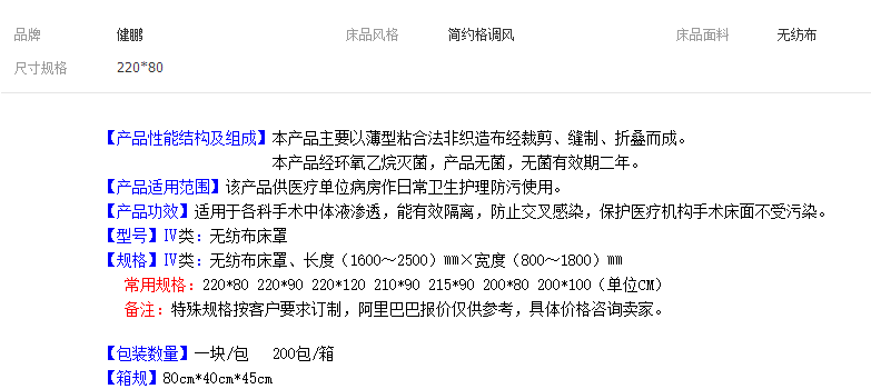 健鹏 专业医用耗材 一次性床罩 加厚防水防油 220*80
