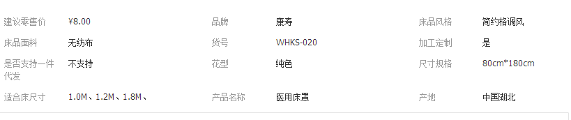 康寿 一次性无纺布床罩(四角橡筋、四周橡筋、两端橡筋)80cm*180cm