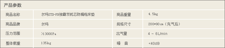 【商品名称】:尔玛STD-PB独霸双机芯防褥疮气床垫