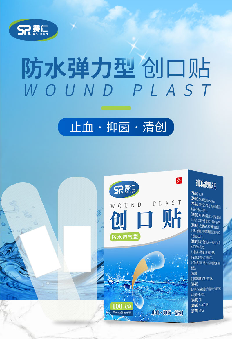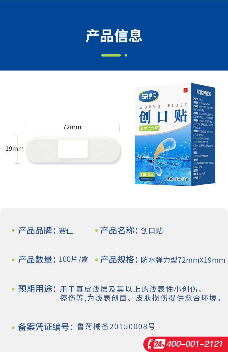赛仁 创口贴 防水弹力型72mmX19mm 100片/盒