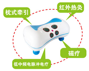 ·综合性 通过对传统治疗方法的分析、吸纳、提高,整合了一套针对颈椎病的综合疗法(如:枕式牵引、中频电疗、红外、磁疗),使治疗过程同时进行,一步完成。更加集中针对。适于家庭,简单方便。