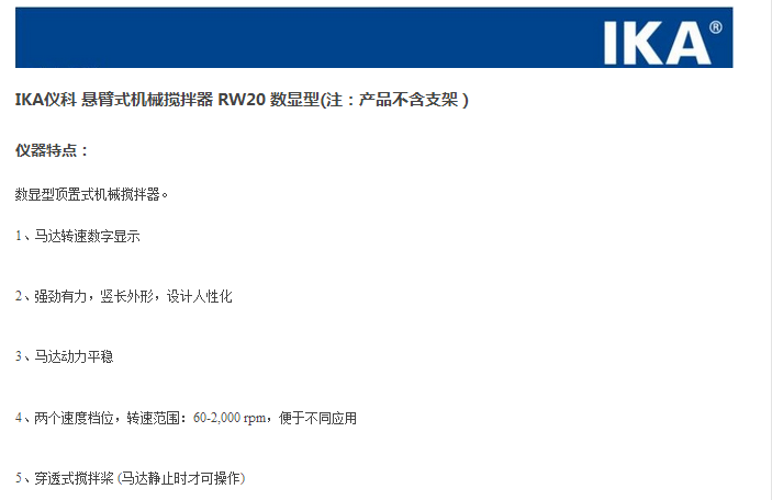IKA仪科 悬臂式机械搅拌器 RW20 数显型