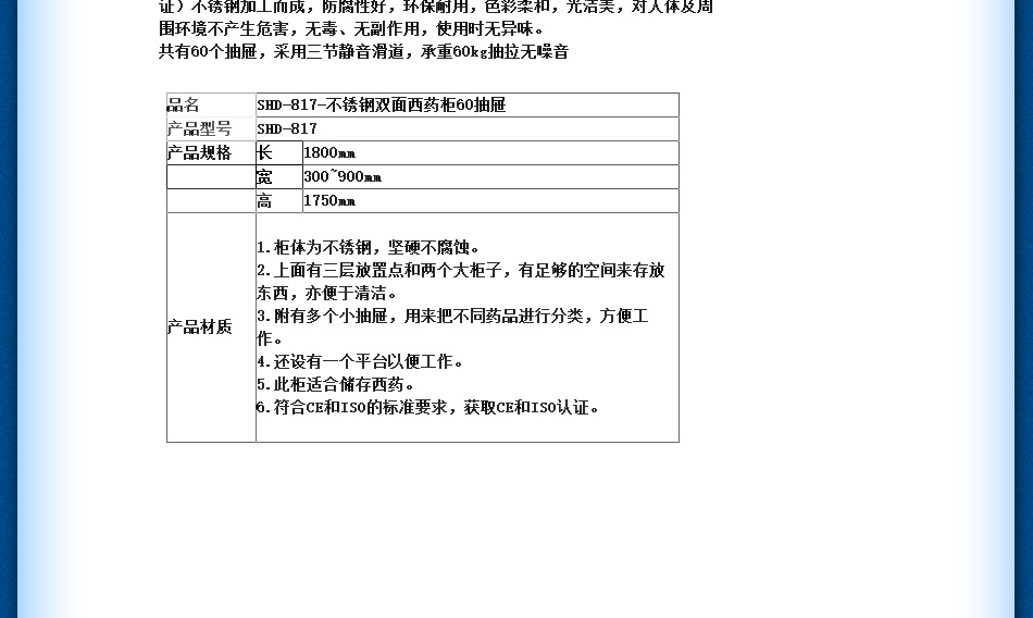 盛德SHD-817-不锈钢双面西药柜60抽屉