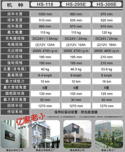 1、红色、蓝色两款; 2、续航:9KM; 3、爬坡:8度; 4、载重:115KG; 5、限速:8KM; 6、有喇叭,但无倒车音; |